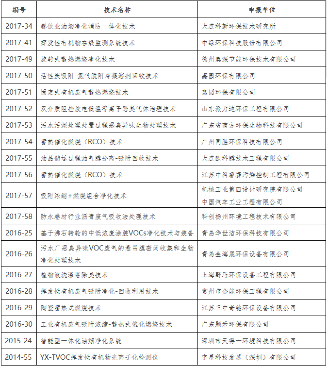 《有机废气(VOCs)治理先进技术目录汇编》(2014~2017)